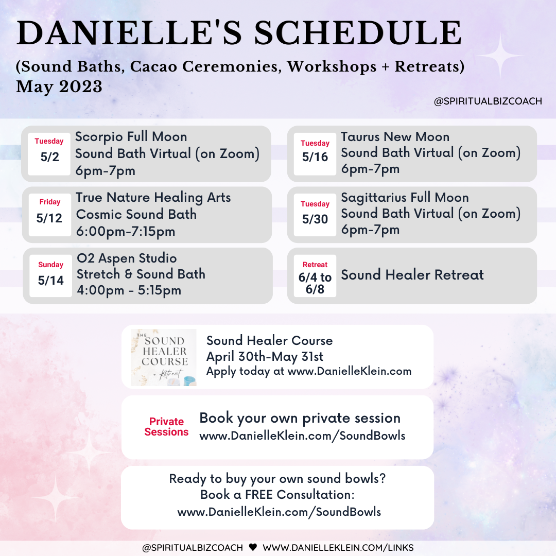Hi, I’m Danielle Klein, a world-renowned Sound Artist, Yoga Instructor and Meditation Teacher, and the founder of The Sound & Energy Academy, where I teach The Sound Healing Course.
